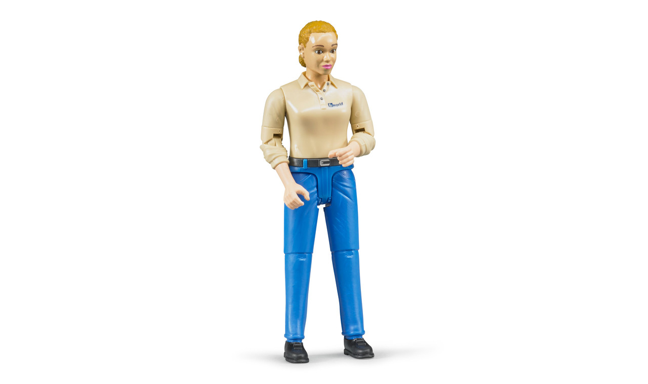 The BRUDER bworld series features numerous figures, buildings and small vehicles to perfectly enhance our wide range of vehicles. Create particularly realistic themed worlds at a scale of 1:16 by combining vehicles and figures. There are almost no boundaries. Figures are available in many variants and they may differ with regard to the following characteristics: gender, skin tone, clothing style, clothing colours, hair colour, hair style, footwear, facial expressions as well as prints on face and body.