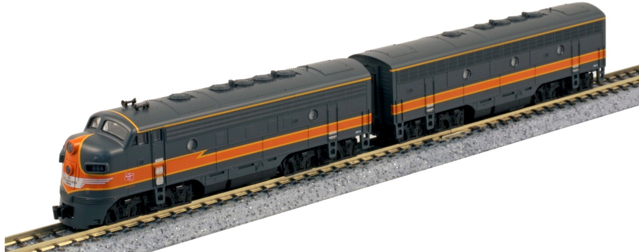 Loading... Please wait...Model Information: The Kato EMD F7 comes in both A and B (cabless) variations, and is retooled from earlier variations of the F-unit locomotive chassis to make it DCC friendly. Passenger units can be identified by their Steam Generators vs. freight units which lack this detail. Model Features: DCC friendly mechanism A-unit LED has directional headlight and illuminated number boards Locomotives have a powerful five pole motor with all wheel electrical pickup and blackened wheels KATO magnetic knuckle couplers