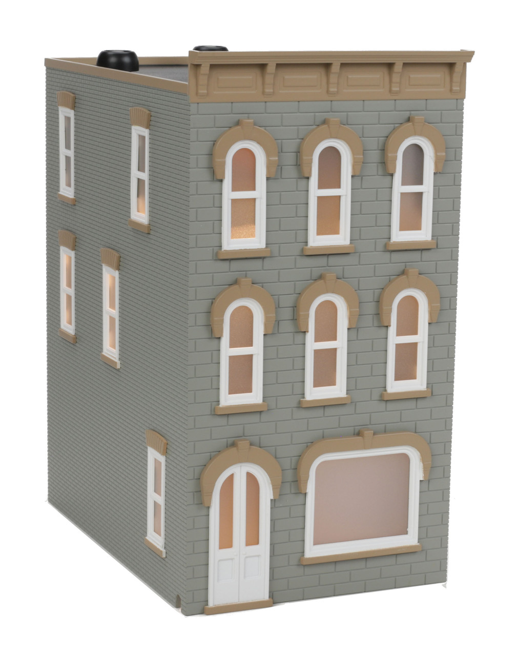 Click the button below to add the MTH Raiking Railtown 3-Story Town House Gray W/Tan Trim O scale 30-90599 to your wish list.