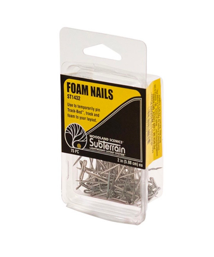Use Foam Nails to temporarily pin track, foam or other products to your layout. This package contains 75 pieces.